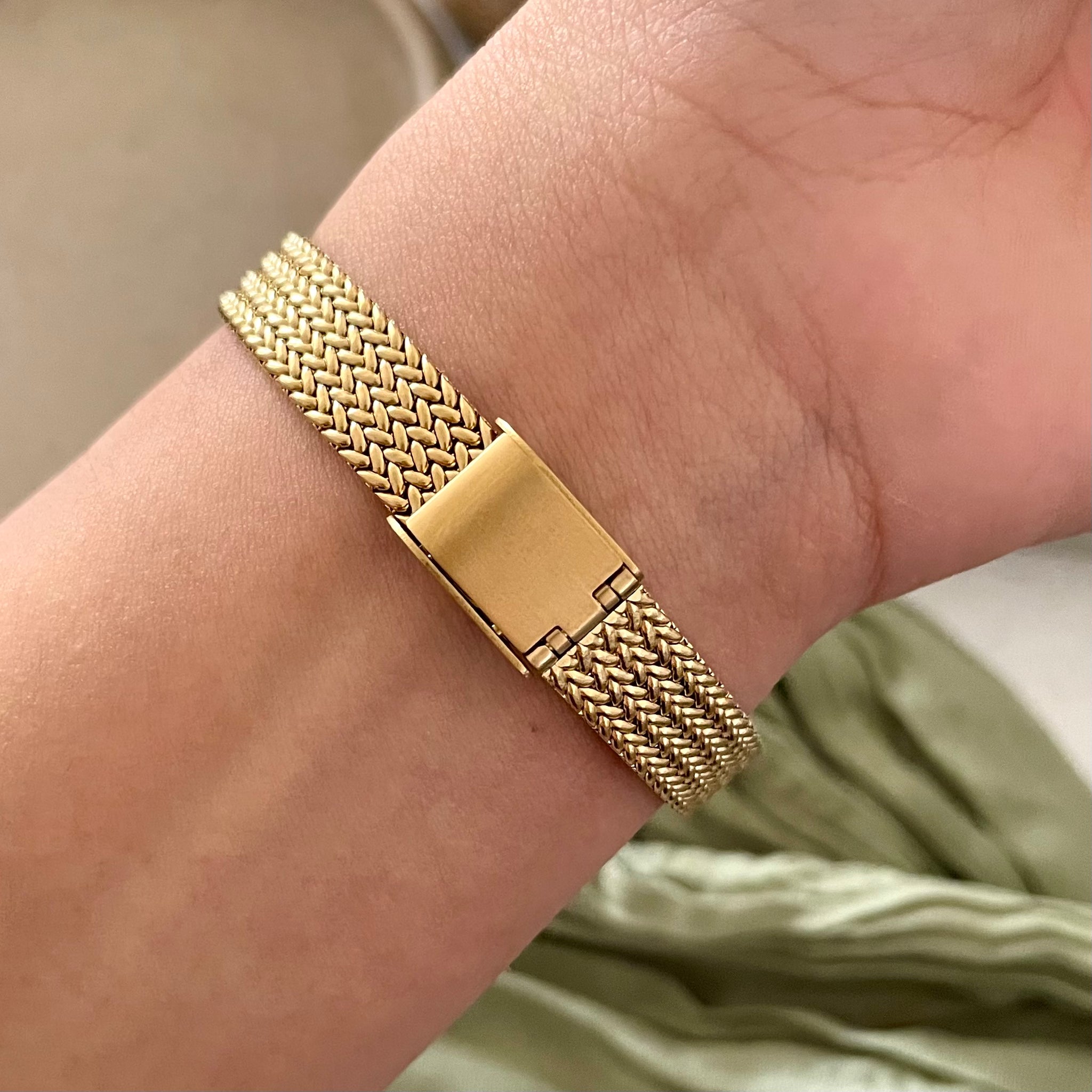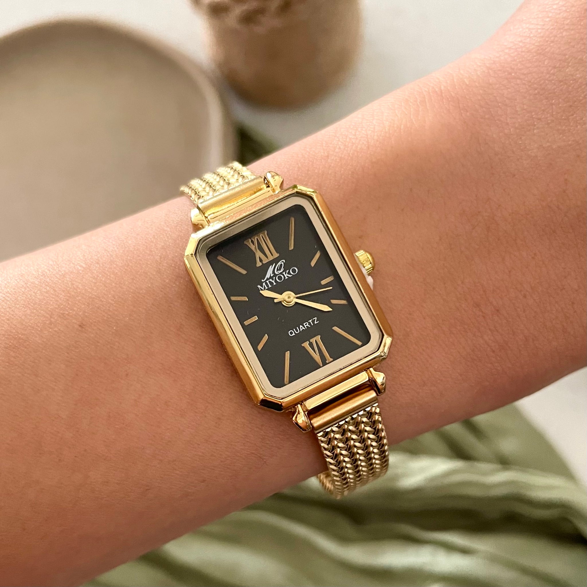 Rectangular Case DesignSunray DialRoman Numeral & Baton MarkersClassic Dauphine HandsStainless Steel Woven BraceletFold-Over Jewelry ClaspVintage Elegant Aesthetic